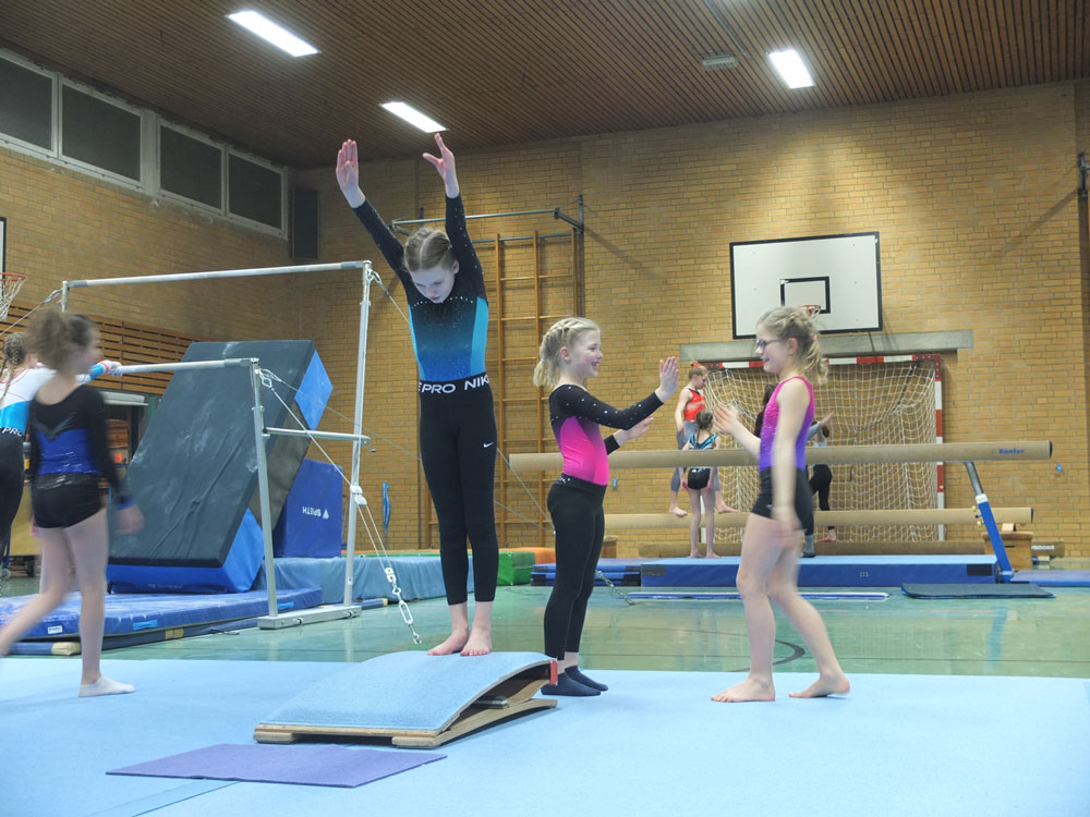Je nach Niveau trainieren die Mädchen in verschiedenen Gruppen bis zu dreimal pro Woche. Gemeinsam mit ausgebildeten Übungsleiterinnen, die beim Aufschwung am Reck oder der Fallkippe am Barren helfend unter die Arme greifen. So werden die Mädchen in der Pflicht, dem Leistungskurs und der Kür für die Einzel- und Mannschaftswettkämpfe vorbereitet. Quer durch Niedersachsen stellen sie schließlich ihr Können unter Beweis, die Turnerinnen in der Kür treten sogar bundesweit an.