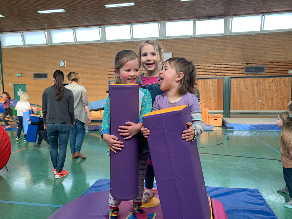 Gerade in den ersten Lebensjahren ist die motorische Entwicklung enorm wichtig – und die wird hier ganz spielerisch gefördert. Da werden Schaumstoffwürfel gestapelt, Hula-Hoop-Reifen geschwungen und Hüpfberge erobert. Und ganz nebenbei üben sich die kleinen Weltentdecker in Rücksichtnahme und gegenseitiger Hilfe.