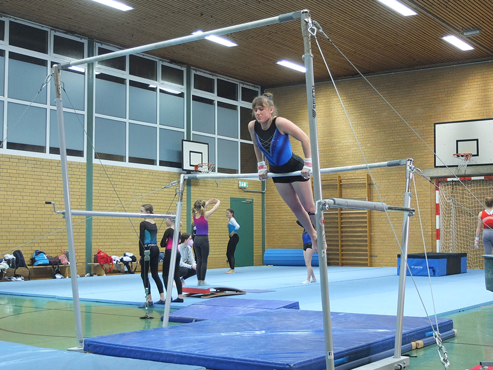 Je nach Niveau trainieren die Mädchen in verschiedenen Gruppen bis zu dreimal pro Woche. Gemeinsam mit ausgebildeten Übungsleiterinnen, die beim Aufschwung am Reck oder der Fallkippe am Barren helfend unter die Arme greifen. So werden die Mädchen in der Pflicht, dem Leistungskurs und der Kür für die Einzel- und Mannschaftswettkämpfe vorbereitet. Quer durch Niedersachsen stellen sie schließlich ihr Können unter Beweis, die Turnerinnen in der Kür treten sogar bundesweit an.